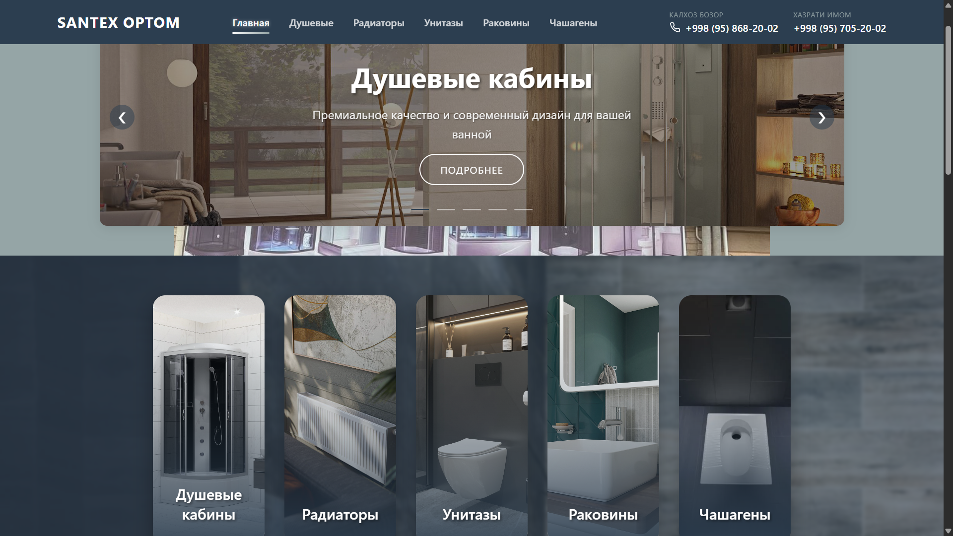 SANTEX OPTOM в Бухаре - продажа сантехники душевые кабины, радиаторы отопления, унитазы, раковины, смесители.